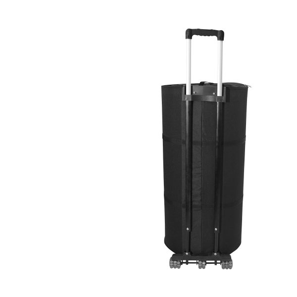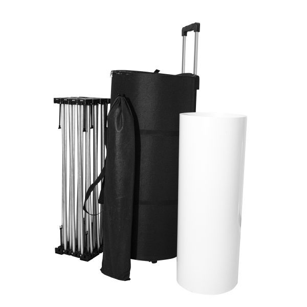Su estructura posibilita un montaje sencillo y su portabilidad facilita el transporte, mientras su calidad superior se evidencia en cada detalle. Este tipo de backing proporciona una amplia área de impresión. Llama la atención por su majestuosidad cuando está completamente armado. Además, está construido con materiales de alta durabilidad, asegurando su resistencia a largo plazo. La maleta que lo contiene está equipada con ruedas para una manipulación y movilidad sencillas durante el transporte.